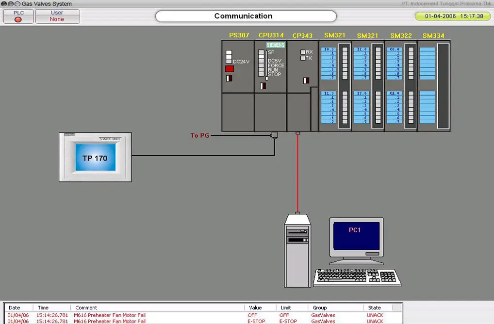 PLC System for Gas Control Valves, Cement Plant, Bogor