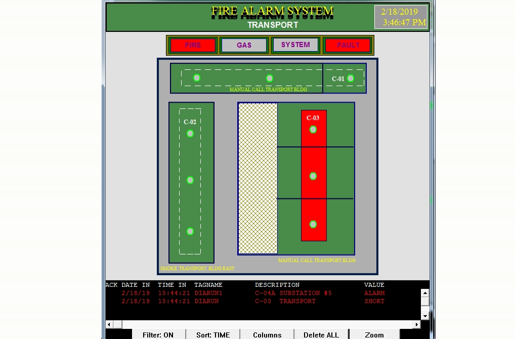 •53 BRODERSEN RTU8 Hardware, Fire•Smoke, Gas Detectors distributed in 700 zones (non addressable)•RS-485 cables•Patton short Haul Modems Interface•Twisted pair cable network up to 8Km radius; •2000 I/Os.•PC with Multiport Digiboard in PCI Slots.